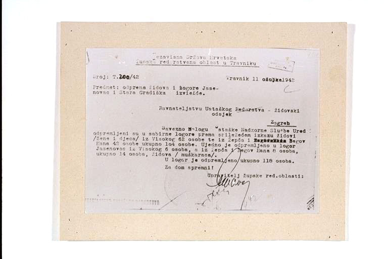 Извор: Архив Републике Српске: Збирка „Концентрациони логор Јасеновац“